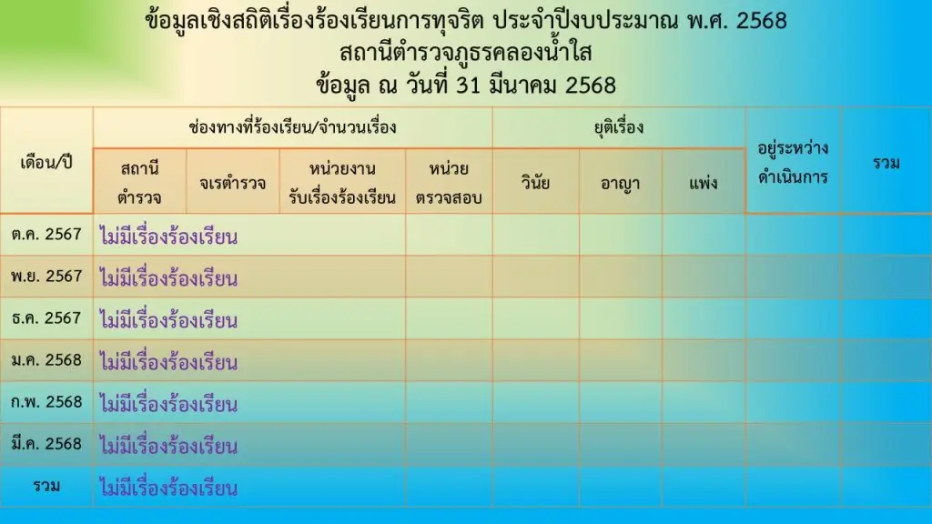 O17 : ช่องทางการแจ้งเรื่องร้องเรียนการทุจริตและข้อมูลเชิงสถิติเรื่องร้องเรียนการทุจริต